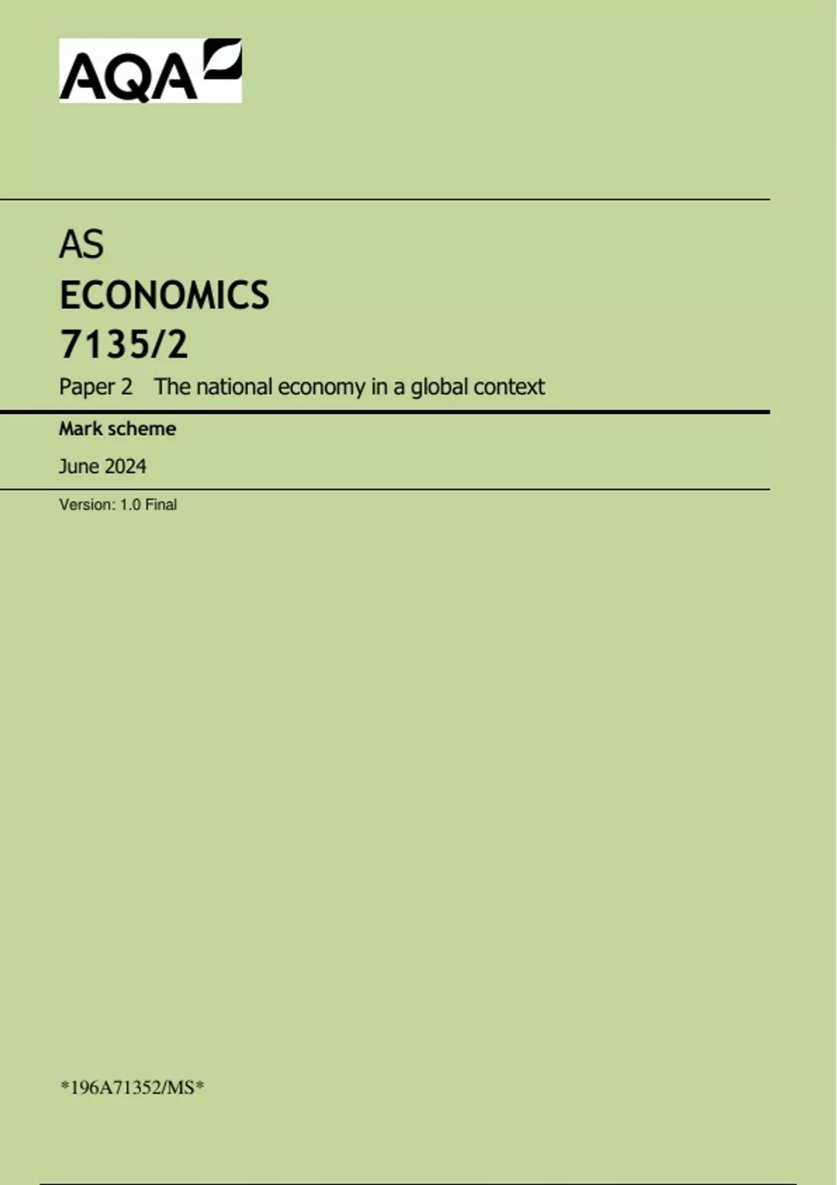 , MARK SCHEME – AS ECONOMICS – 7135/2 – JUNE 2024