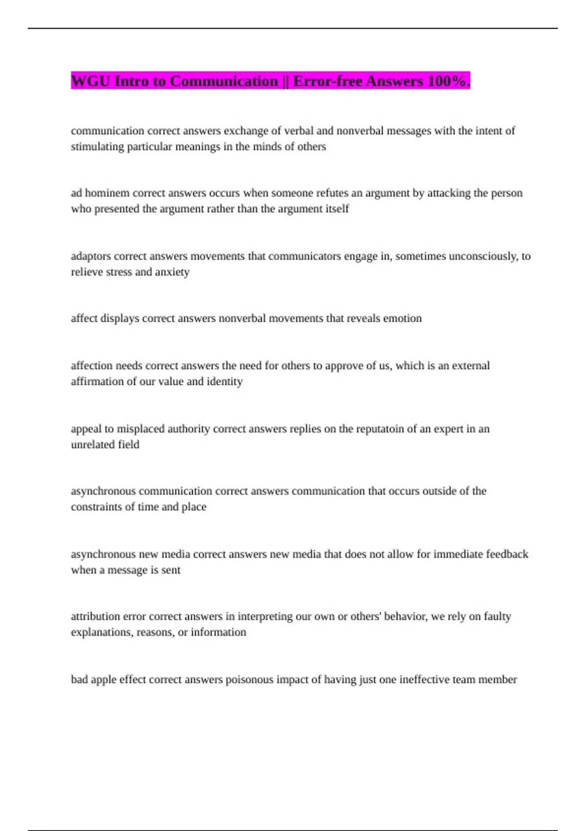 WGU Intro to Communication || Error-free Answers 100%.
