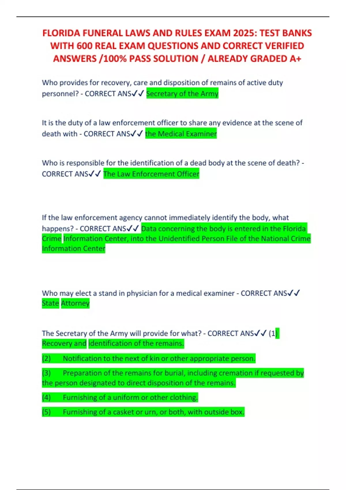 CORRECT ANS✔✔ The Department of Law Enforcement