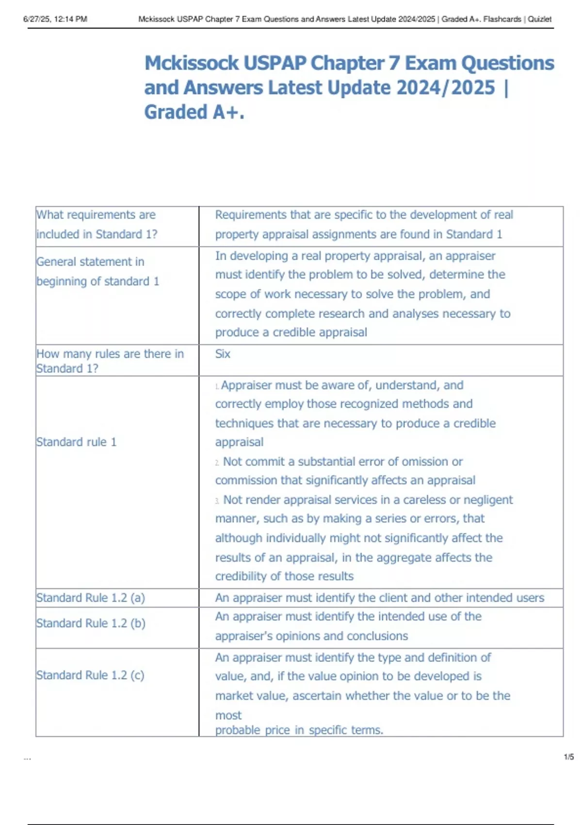 , 6/27/25, 12:14 PM Mckissock USPAP Chapter 7 Exam Questions and Answers Latest Update 2024/2025 | Graded A+. Flashcards | Quizlet
