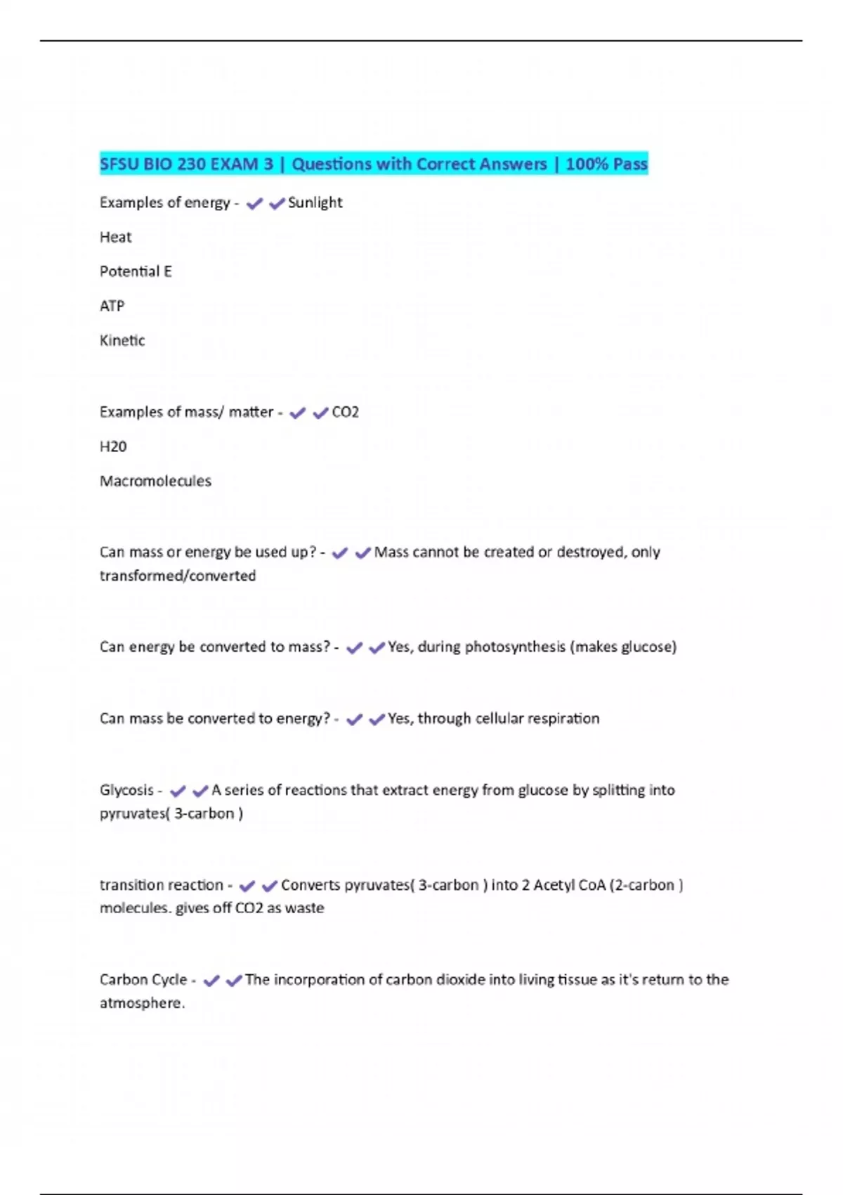 SFSU BIO 230 EXAM 3 | Questions with Correct Answers | 100% Pass