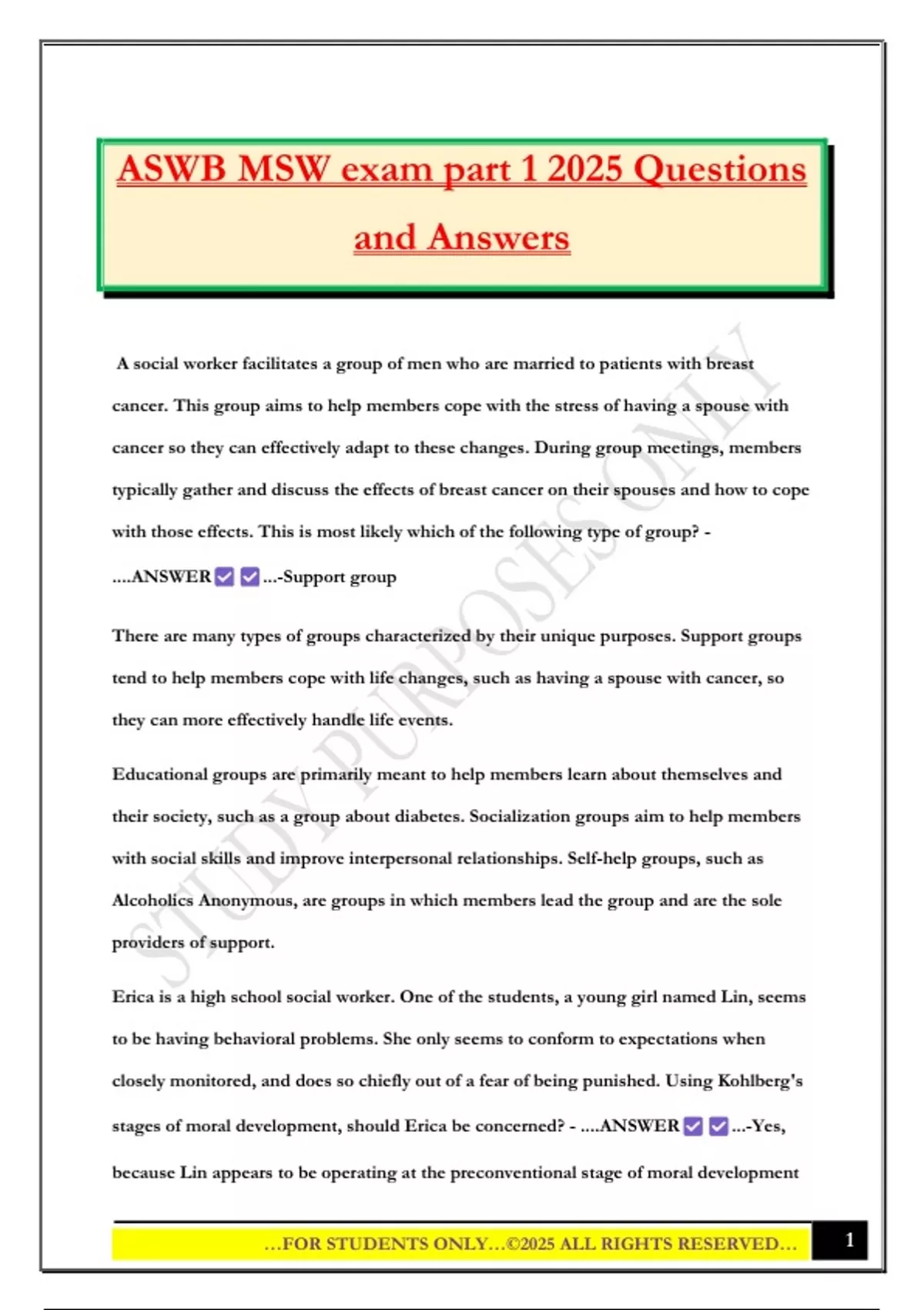 ASWB MSW exam part 1 2025 Questions and Answers