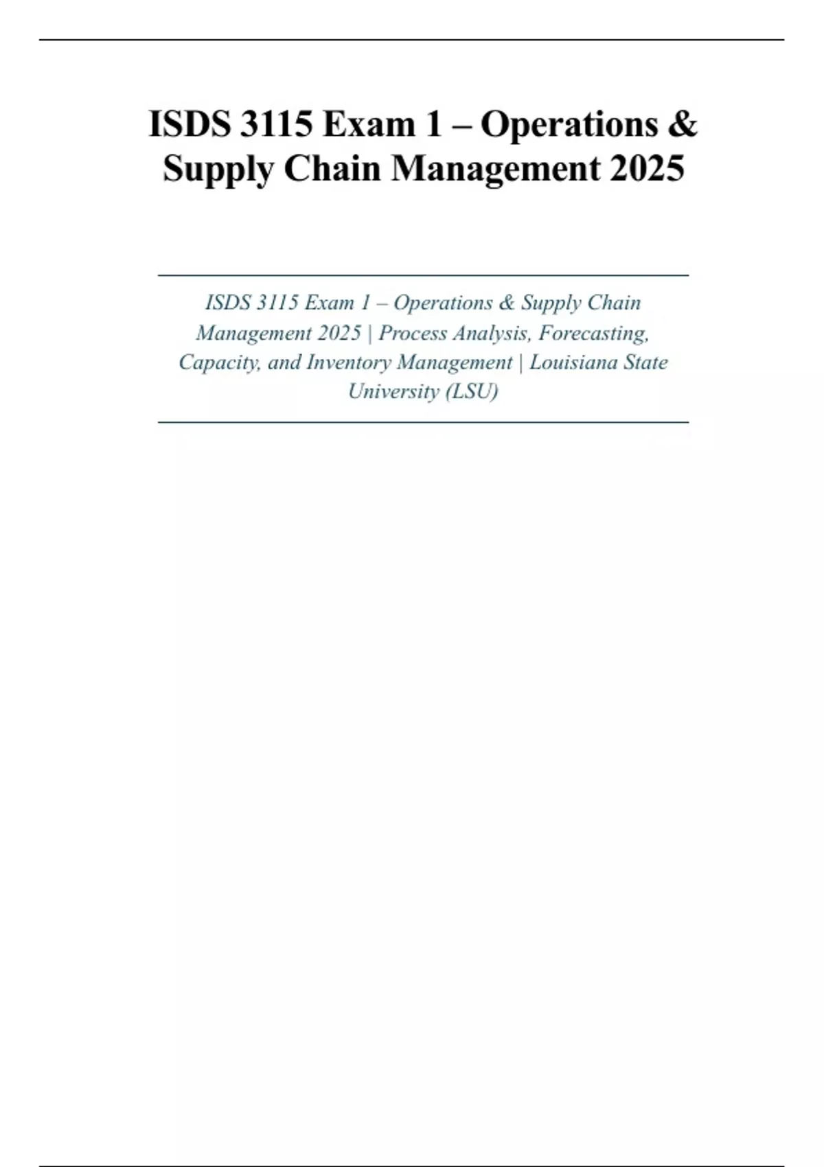 ISDS 3115 Exam 1 – Operations & Supply Chain Management 2025 | Process Analysis, Forecasting, Capacity, and Inventory Management | Louisiana State University (LSU