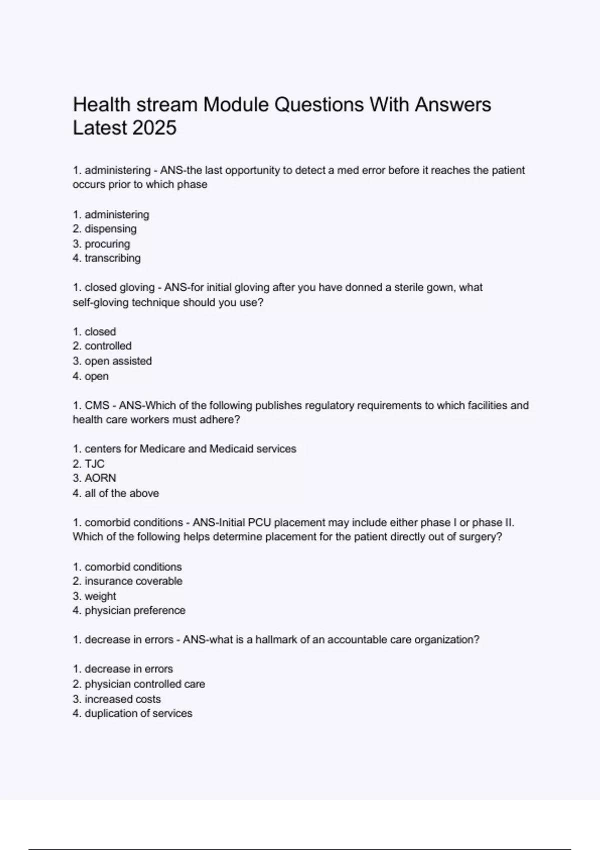1. CMS - ANS-Which of the following publishes regulatory requirements to which facilities and