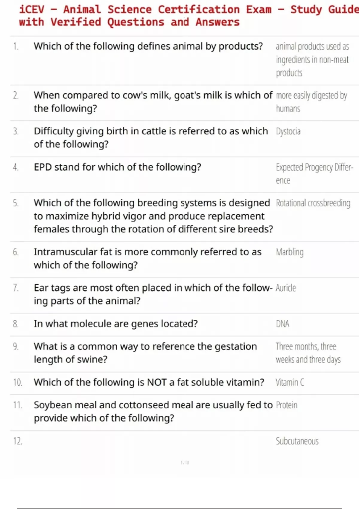 iCEV – Animal Science Certification Exam – Study Guide with Verified Questions and Answers