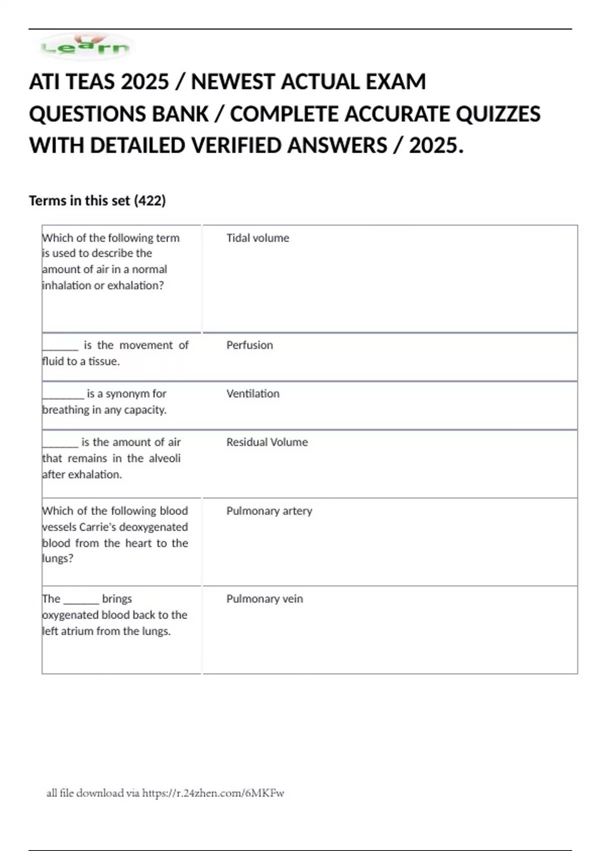 ATI TEAS 2025 Exam Questions Bank Anatomy & Physiology