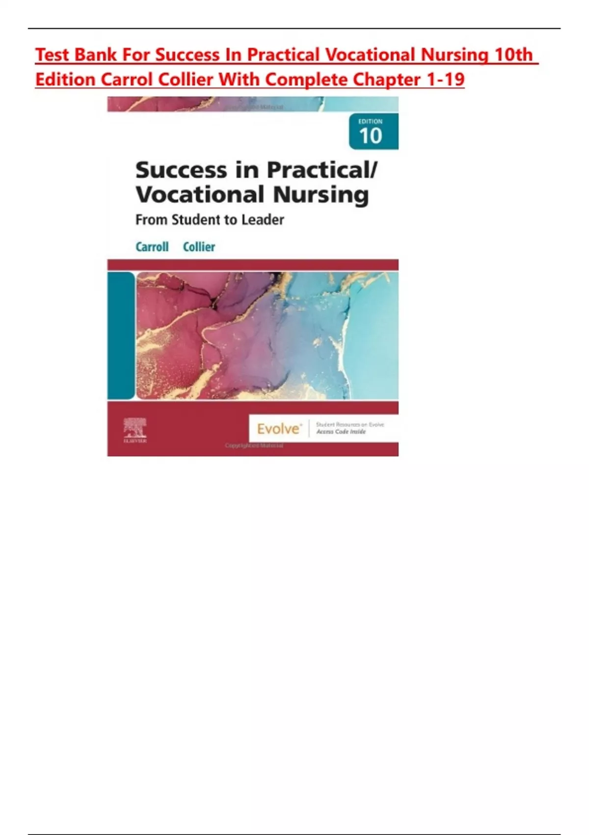Test Bank For Success In Practical Vocational Nursing 10th