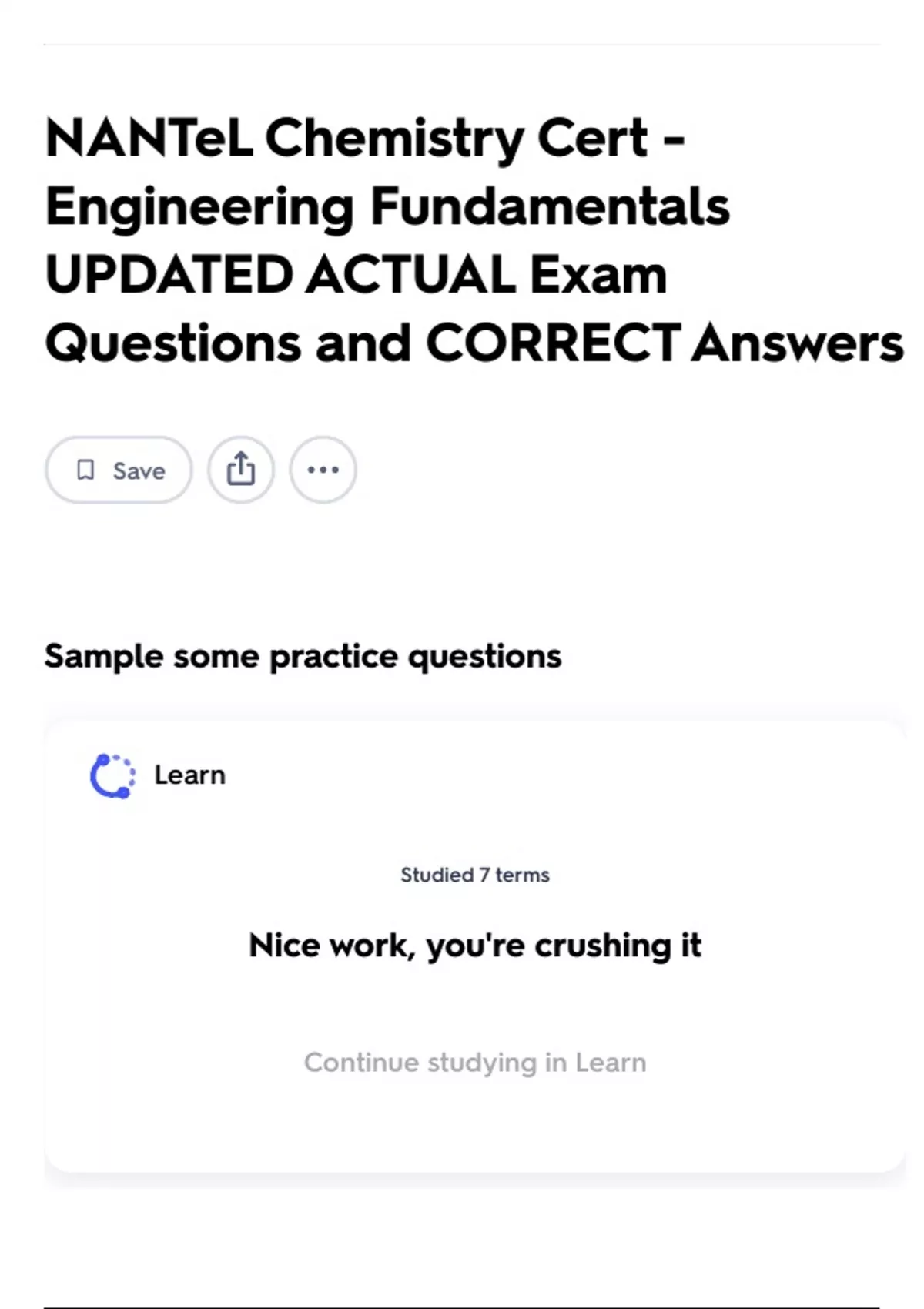 NANTeL Chemistry Cert - Engineering Fundamentals UPDATED ACTUAL Exam Questions and CORRECT Answers