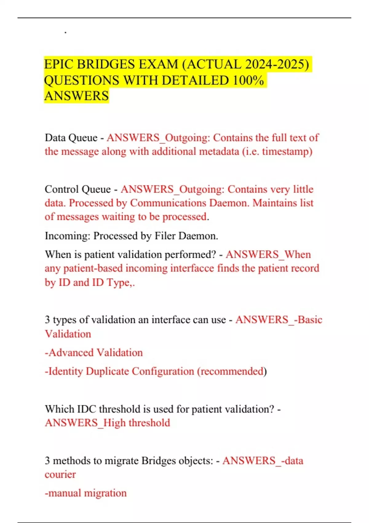 EPIC BRIDGES EXAM (ACTUAL ) QUESTIONS WITH DETAILED 100% ANSWERS