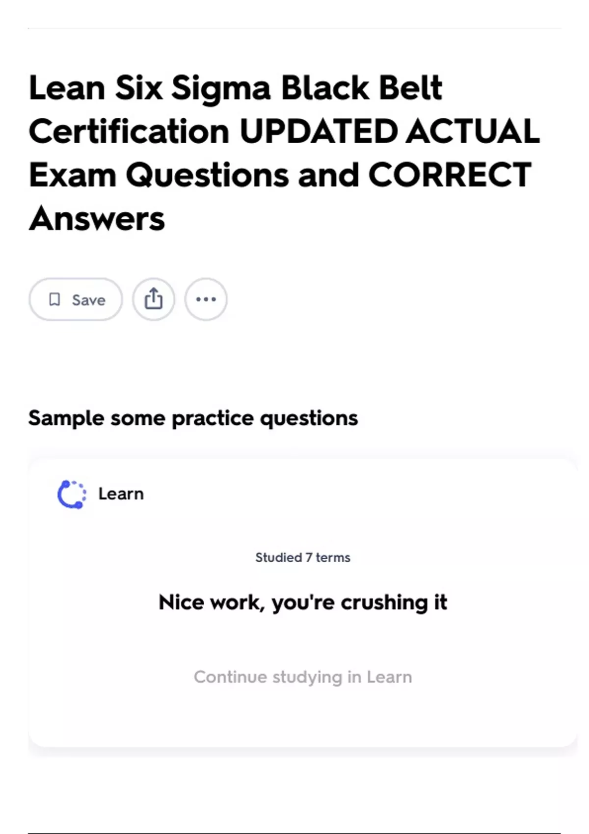Continue studying in Learn
