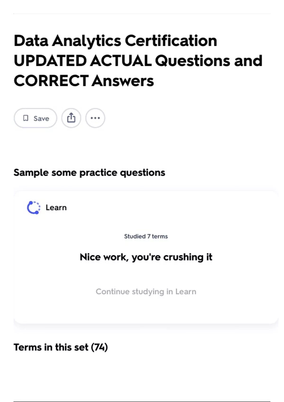 Continue studying in Learn