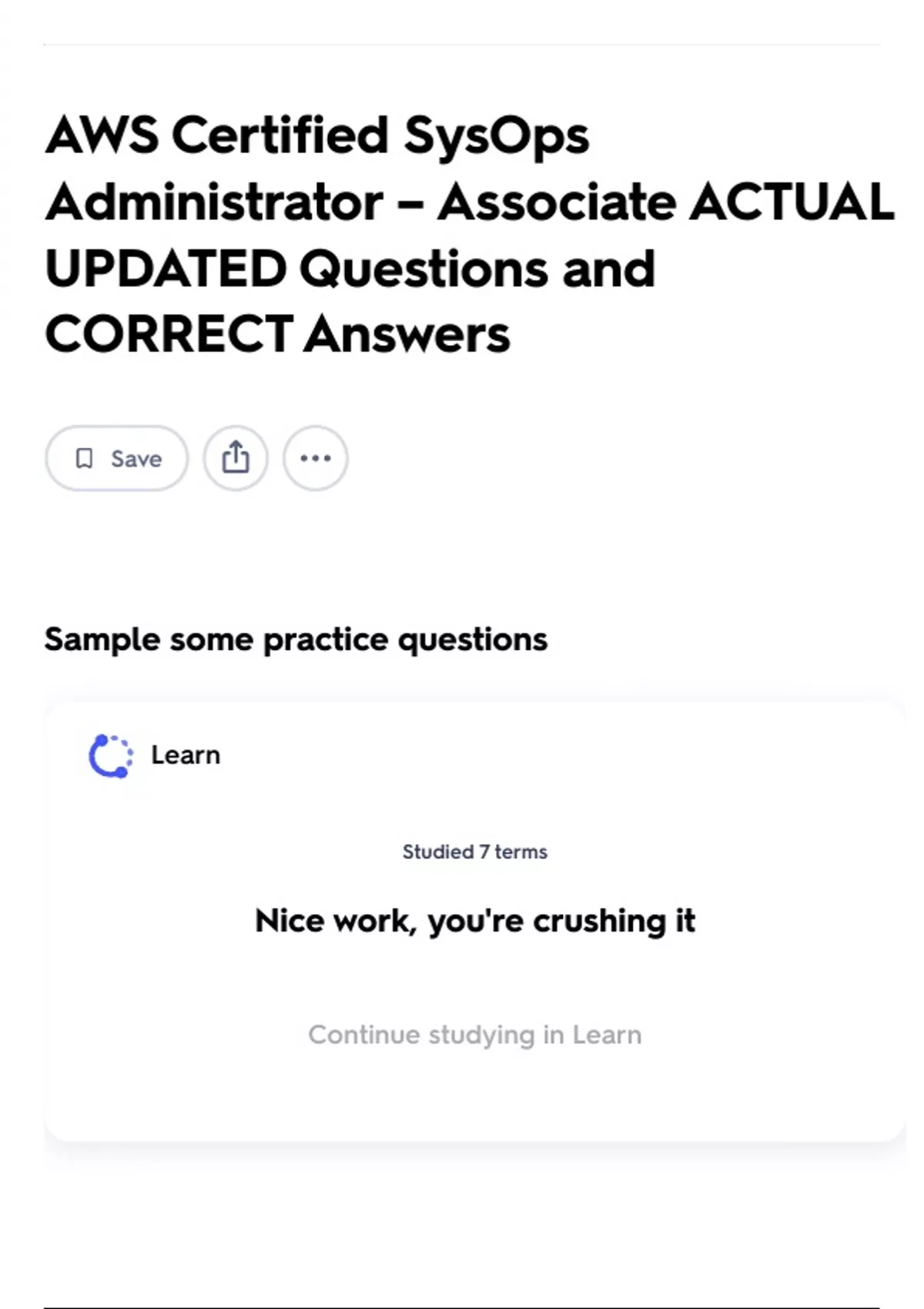 AWS Certified SysOps Administrator – Associate ACTUAL UPDATED Questions and CORRECT Answers