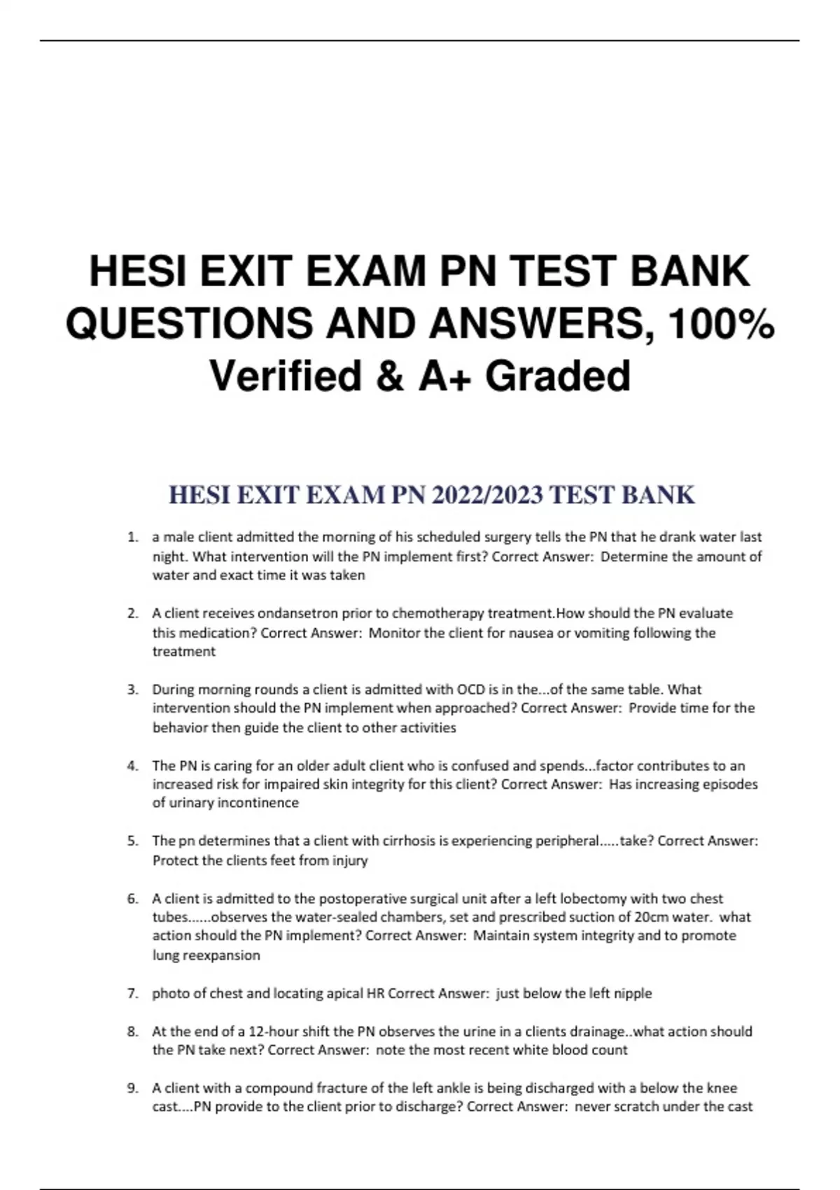 HESI EXIT EXAM PN TEST BANK QUESTIONS AND ANSWERS, 100% Verified & A+ Graded