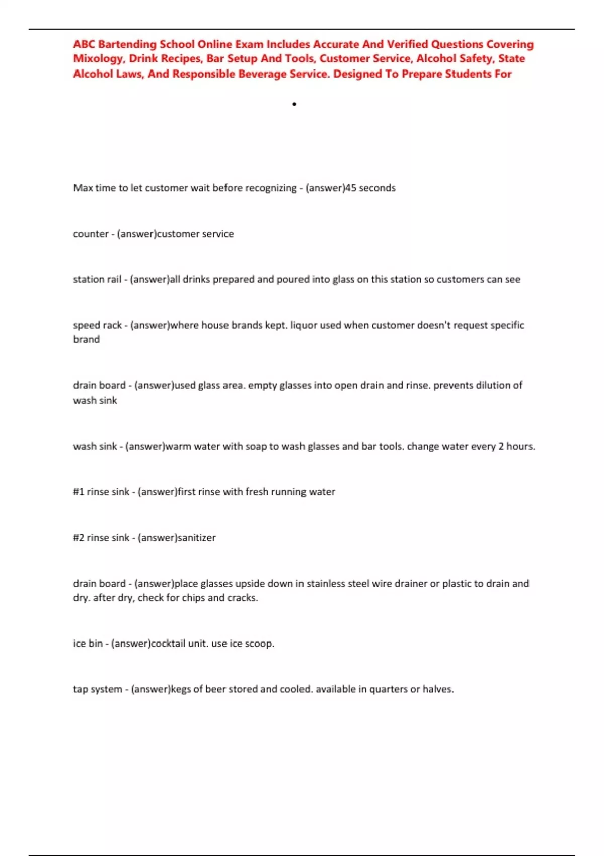 ,ABC Bartending School Online Exam Includes Accurate And Verified Questions Covering