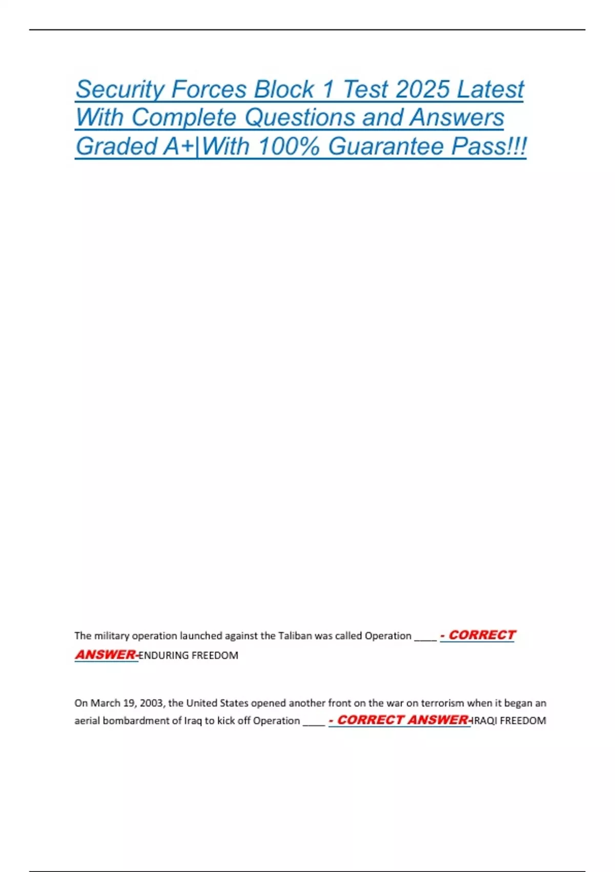 Security Forces Block 1 Test 2025 Latest With Complete Questions and Answers Graded A+|With 100% Guarantee Pass!!!