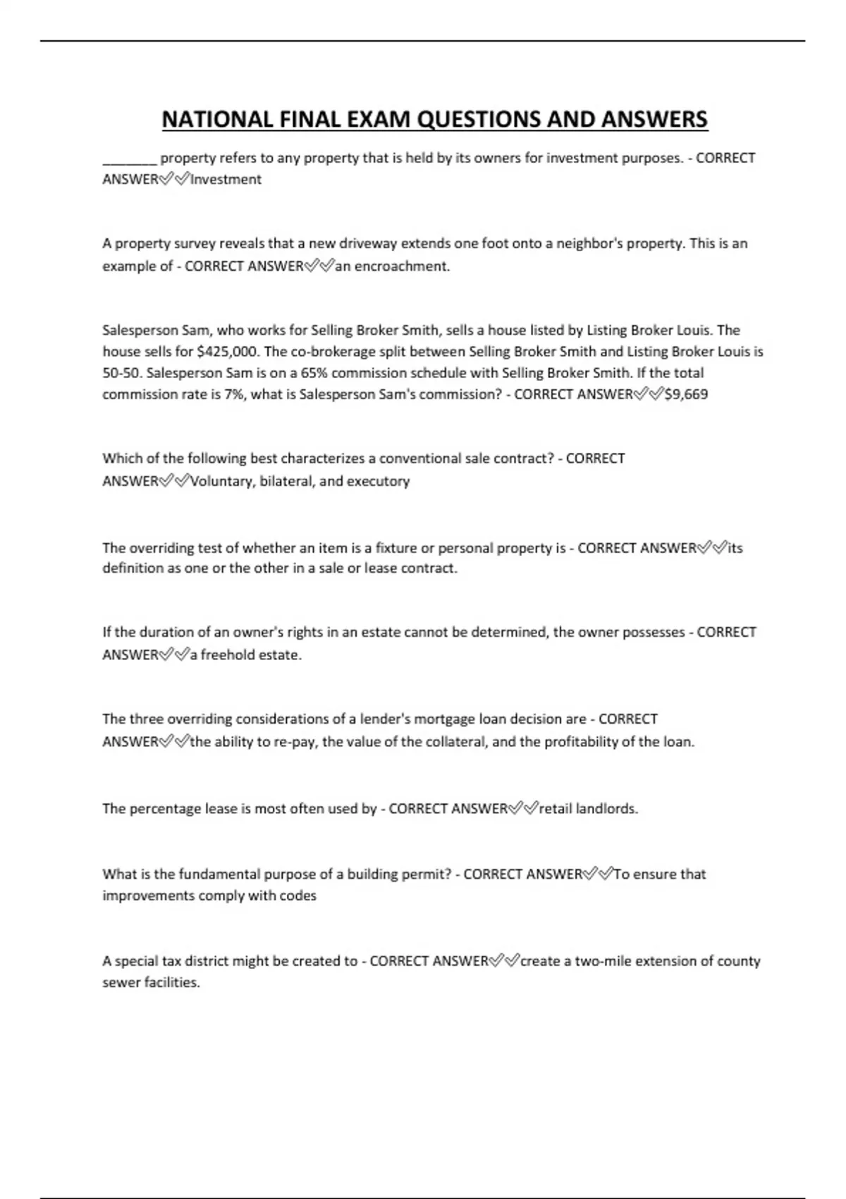 NATIONAL FINAL EXAM QUESTIONS AND ANSWERS