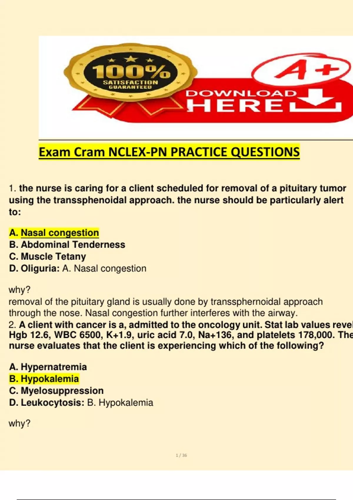 1. the nurse is caring for a client scheduled for removal of a pituitary tumor