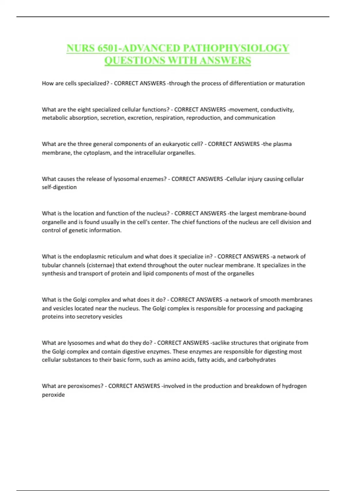 NURS 6501-ADVANCED PATHOPHYSIOLOGY QUESTIONS WITH ANSWERS