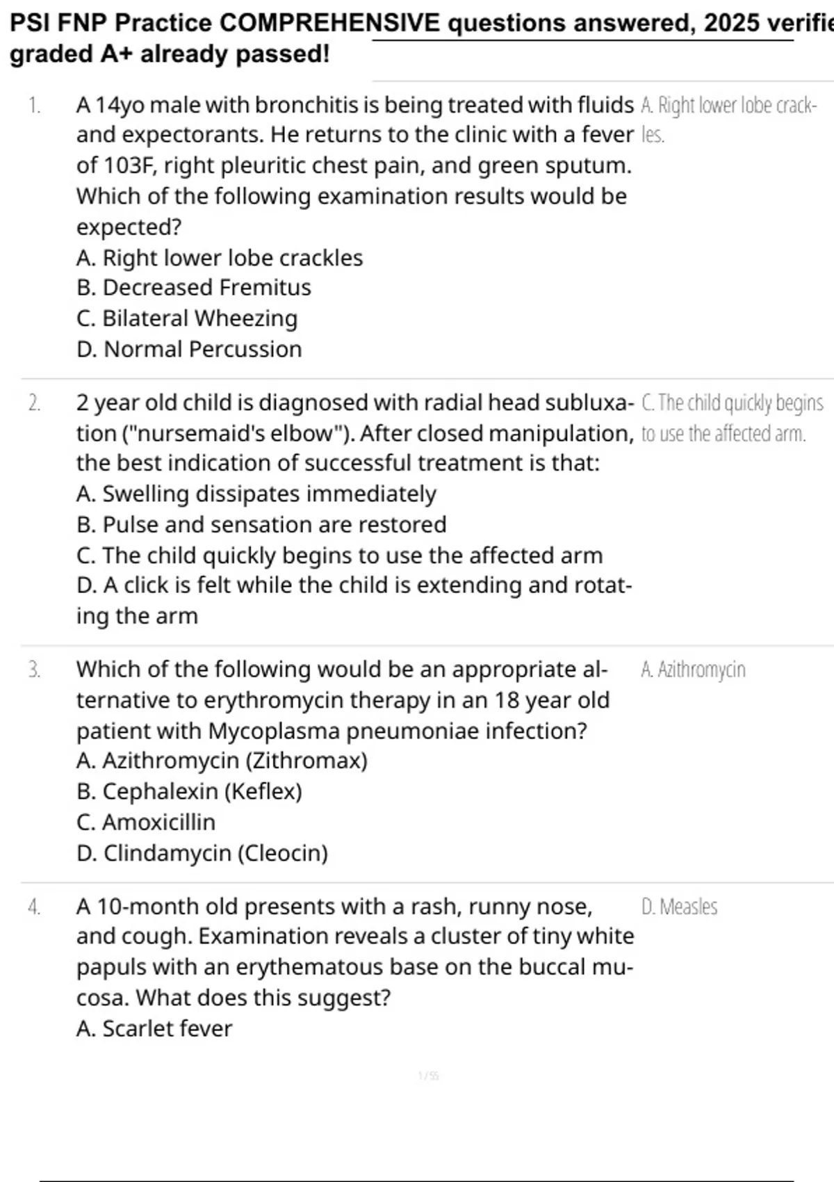 PSI FNP Practice COMPREHENSIVE questions answered, 2025 verifie
