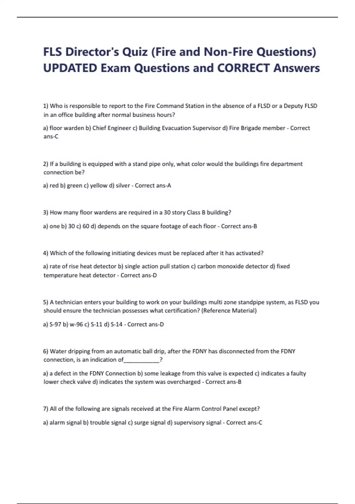 FLS Director's Quiz (Fire and Non-Fire Questions)