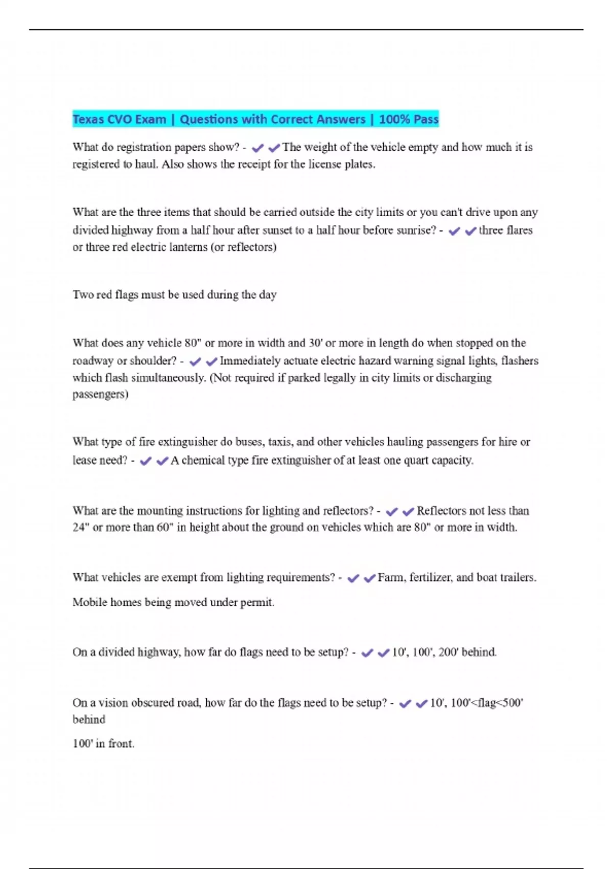 texas cvo exam questions with correct answers