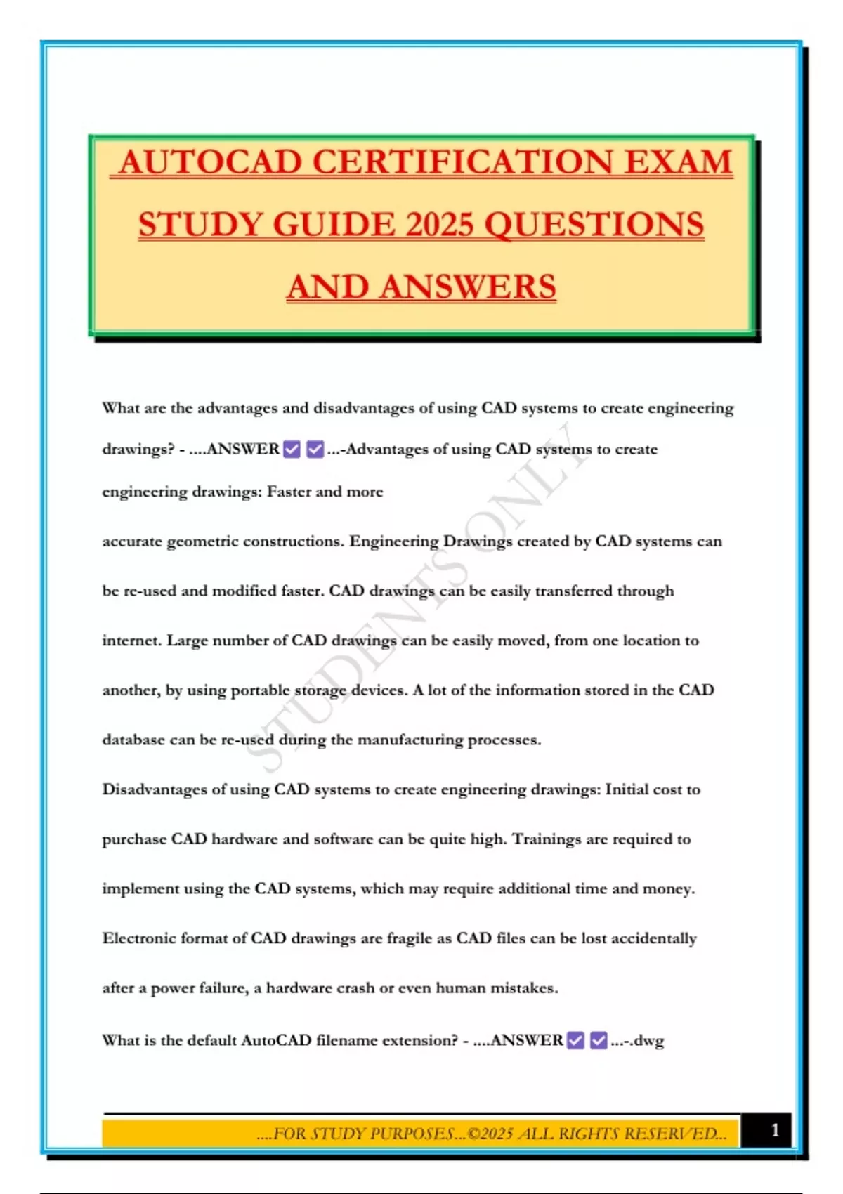 AUTOCAD CERTIFICATION EXAM STUDY GUIDE 2025 QUESTIONS AND ANSWERS