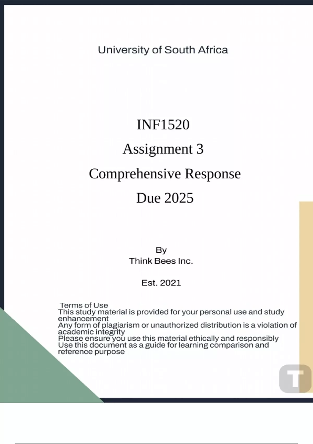 INF1520 Assignment 3 (Comprehensive Response) Due 2025