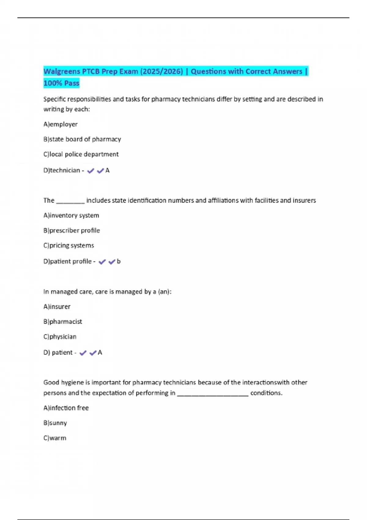 Walgreens PTCB Prep Exam (2025/2026) | Questions with Correct Answers | 100% Pass