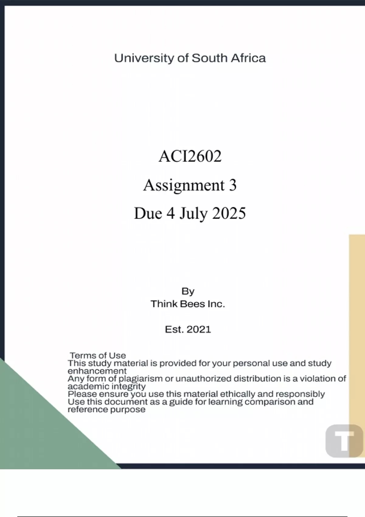 ACI2602 Assignment 3 (Comprehensive Response) Due 4 July 2025