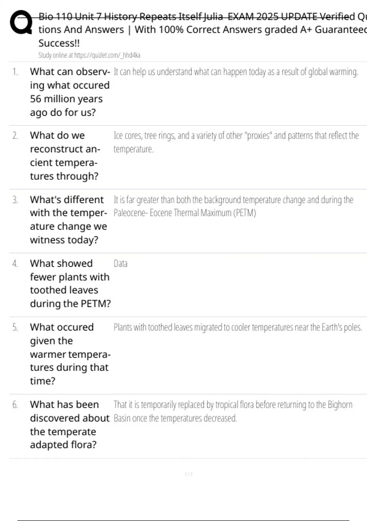 Bio 110 Unit 7 History Repeats Itself Julia EXAM 2025 UPDATE Verified Questions And Answers | With 100% Correct Answers graded A+ Guaranteed Success!!