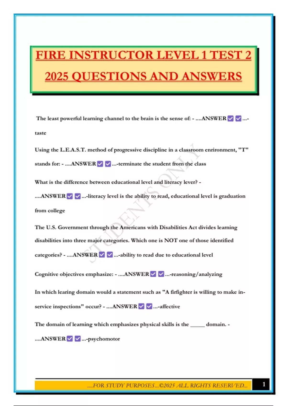 FIRE INSTRUCTOR LEVEL 1 TEST 2