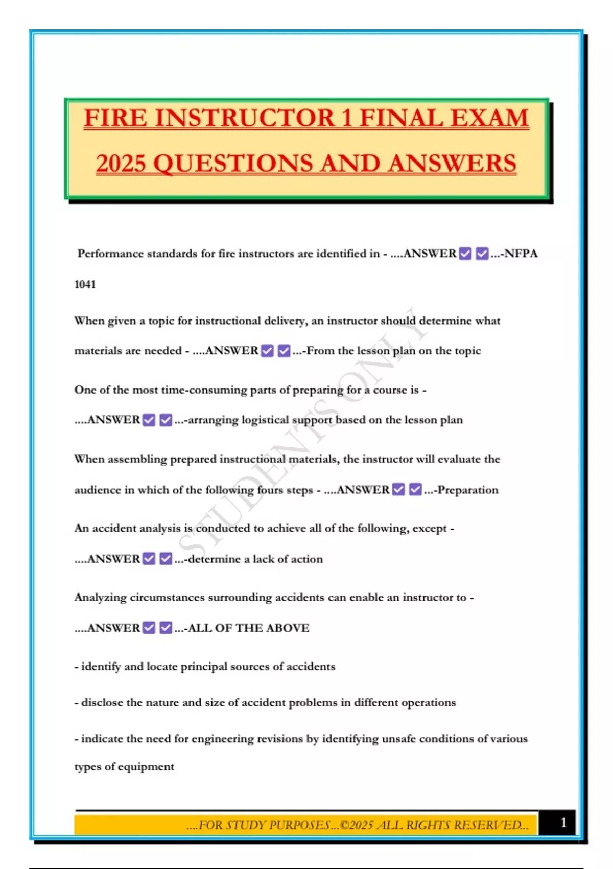 FIRE INSTRUCTOR 1 FINAL EXAM 2025 QUESTIONS AND ANSWERS