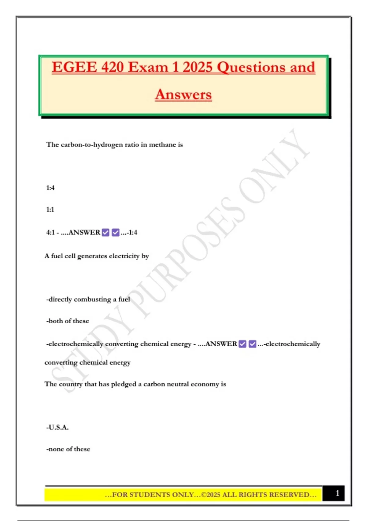 EGEE 420 Exam 1 2025 Questions and
