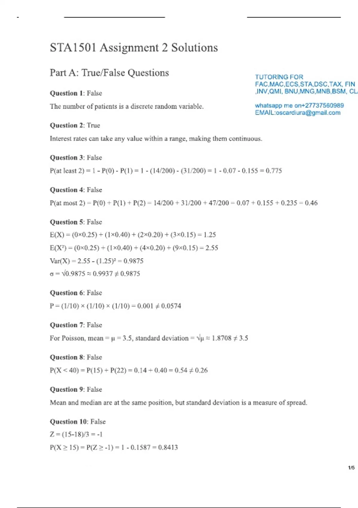 STA1501 ASSIGNMENT 02 Unique Nr.( 849806) OF 2025 EXPECTED QUESTIONS AND SOLUTIONS