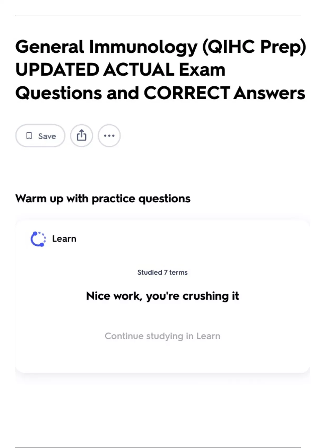 General Immunology (QIHC Prep) UPDATED ACTUAL Exam Questions and CORRECT Answers