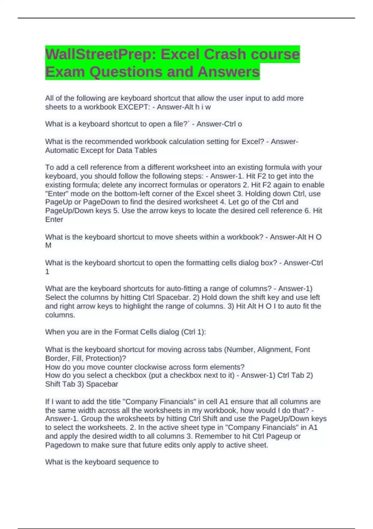 What is the keyboard shortcut to open the formatting cells dialog box? - Answer-Ctrl