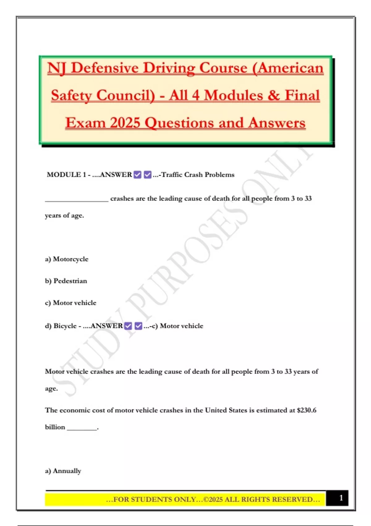 MODULE 1 - ....ANSWER ...-Traffic Crash Problems
