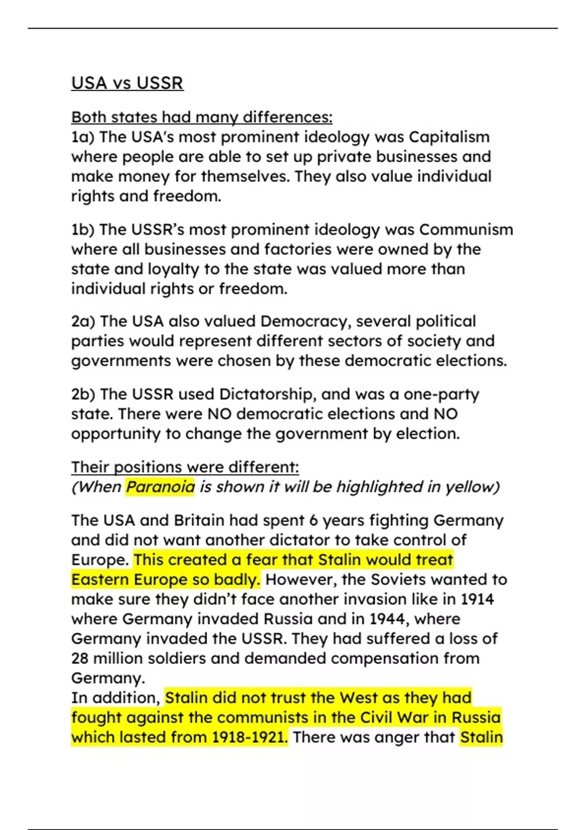 1b) The USSR’s most prominent ideology was Communism