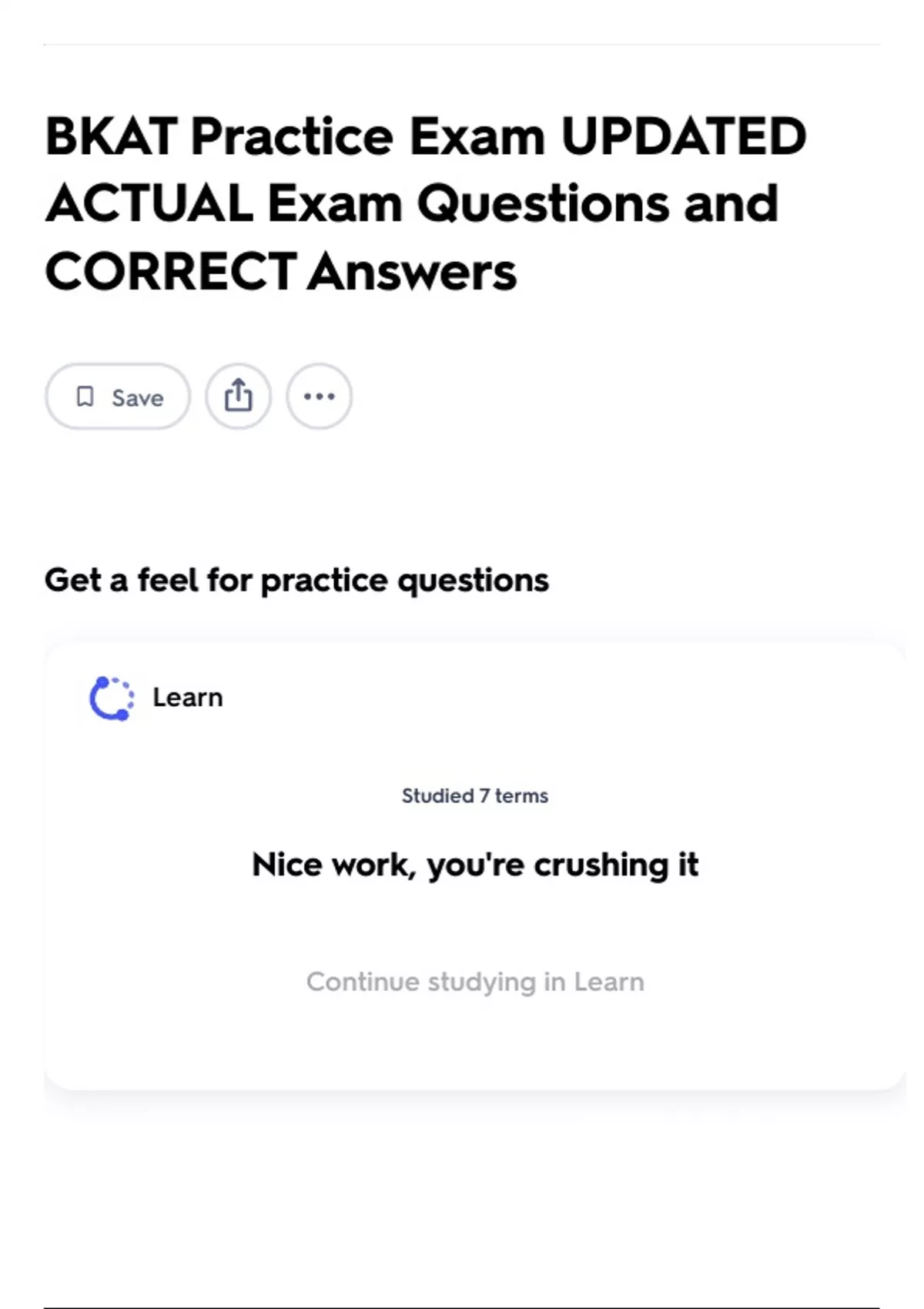 BKAT Practice Exam UPDATED ACTUAL Exam Questions and CORRECT Answers