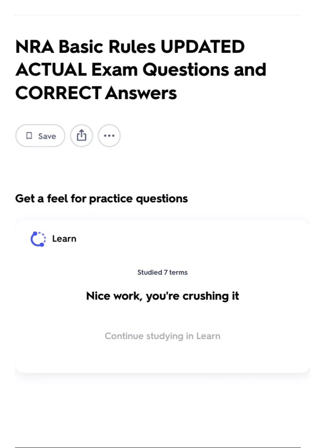 Continue studying in Learn