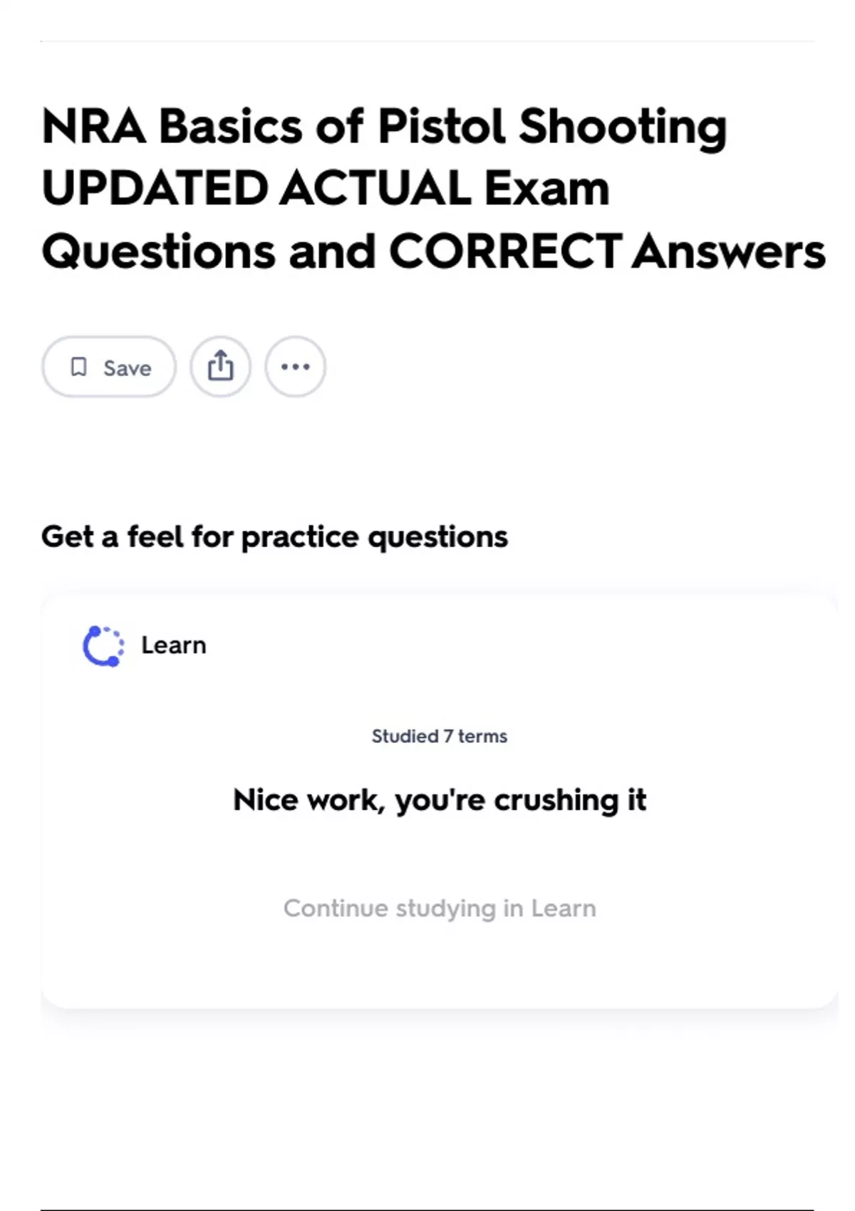 Continue studying in Learn