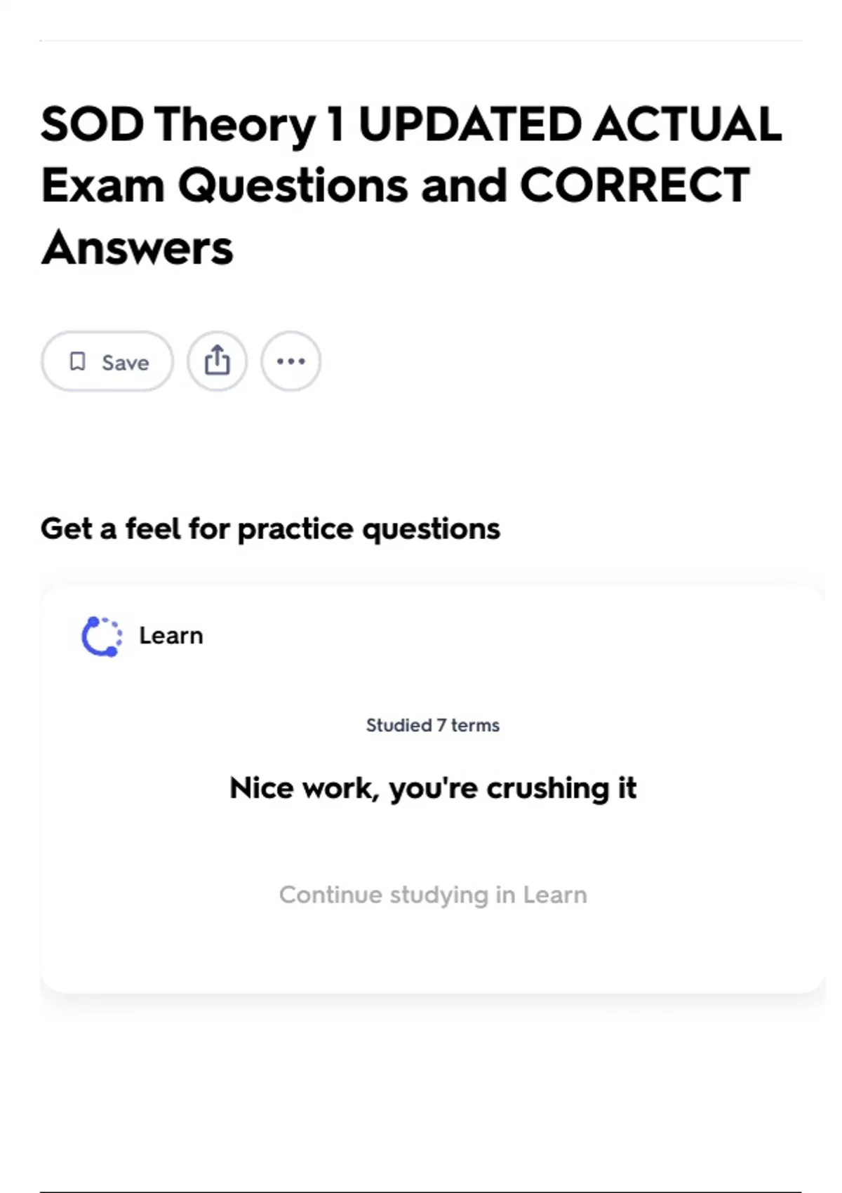 Continue studying in Learn