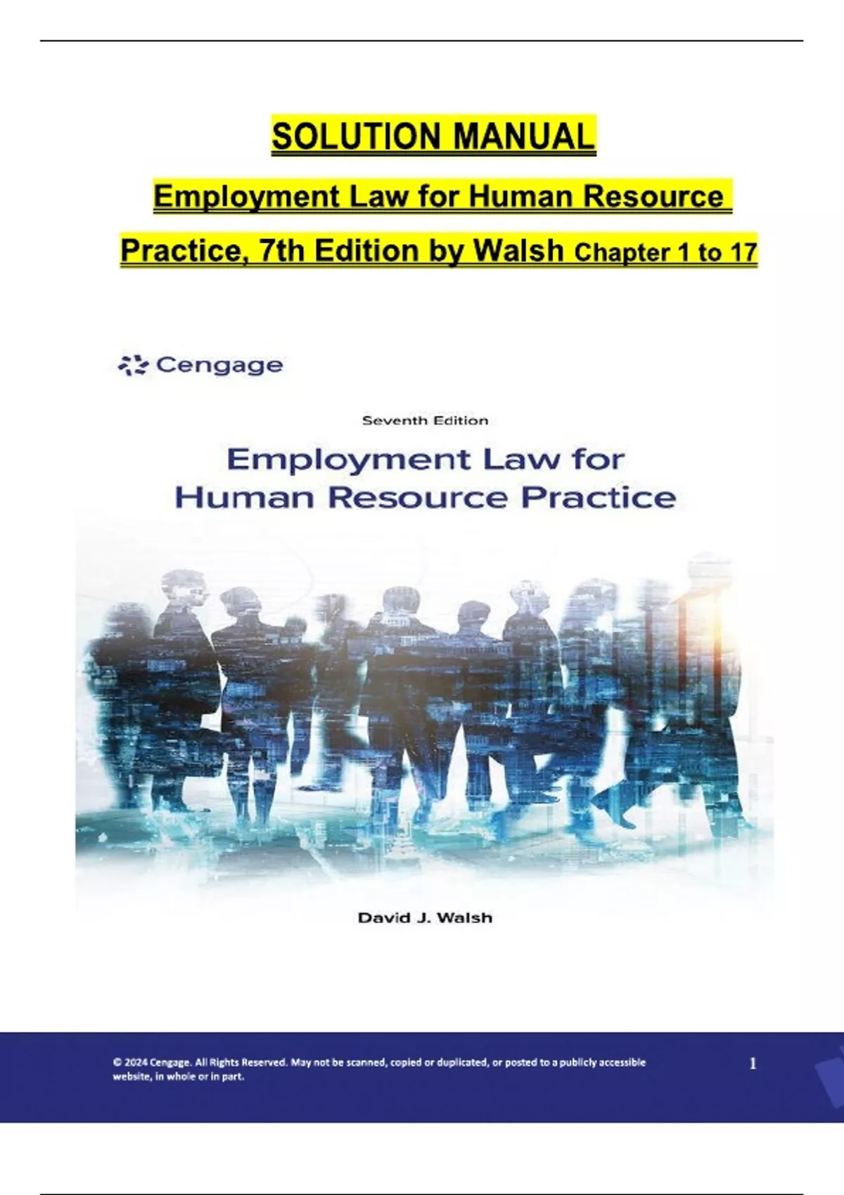 Solution manual for employment law for human resource practice 7th edition by walsh Chapter 1-17