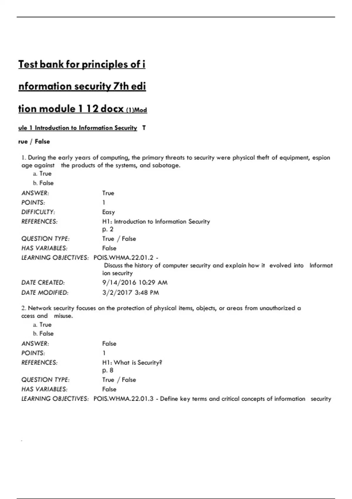 BANK For Principles of Information Security 7th Edition by Whitman and Mattord, Verified Module 1 - 12, Complete Newest Version A+ BANK For Principles of Information Security 7th Edition by Whitman and Mattord, Verified Module 1 - 12, Complete Newest Version A+ BANK For Principles of Information Security 7th Edition by Whitman and Mattord, Verified Module 1 - 12, Complete Newest Version A+ BANK For Principles of Information Security 7th Edition by Whitman and Mattord, Verified Module 1 - 12, Complete Newest Version A+ BANK For Principles of Information Security 7th Edition by Whitman and Mattord, Verified Module 1 - 12, Complete Newest Version A+ BANK For Principles of Information Security 7th Edition by Whitman and Mattord, Verified Module 1 - 12, Complete Newest Version A+