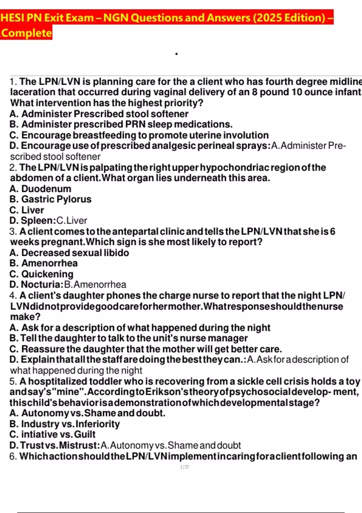 HESI PN Exit Exam – NGN Questions and Answers (2025 Edition) –