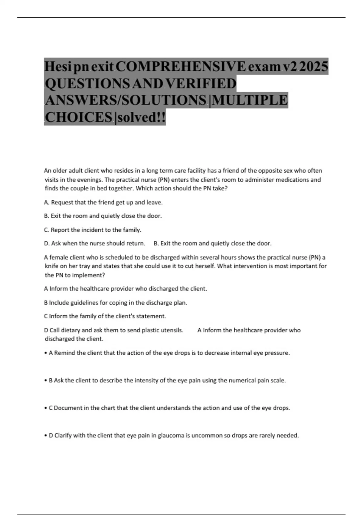 Hesi pn exit COMPREHENSIVE exam v2 2025 m m m m m m