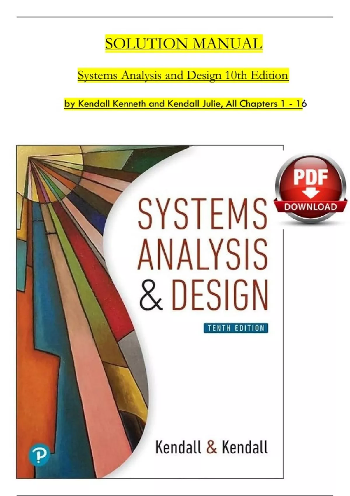 SOLUTION MANUAL Systems Analysis and Design 10th Edition by Kendall Kenneth and Kendall Julie, All Chapters 1 - 16 /// I. Systems Analysis Fundamentals 1. Systems, Roles, and Development Methodologies 2. Understanding and Modeling Organization System