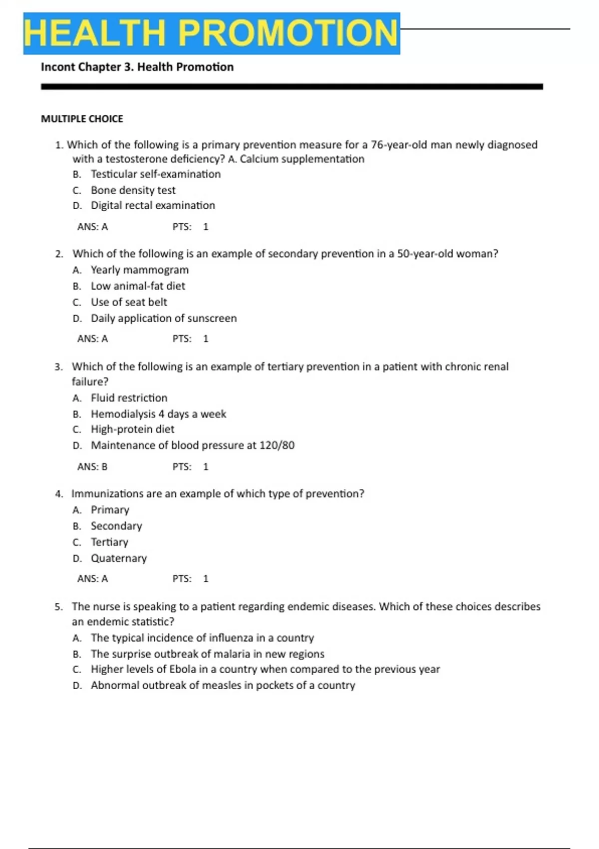 1. Which of the following is a primary prevention measure for a 76-year-old man newly diagnosed