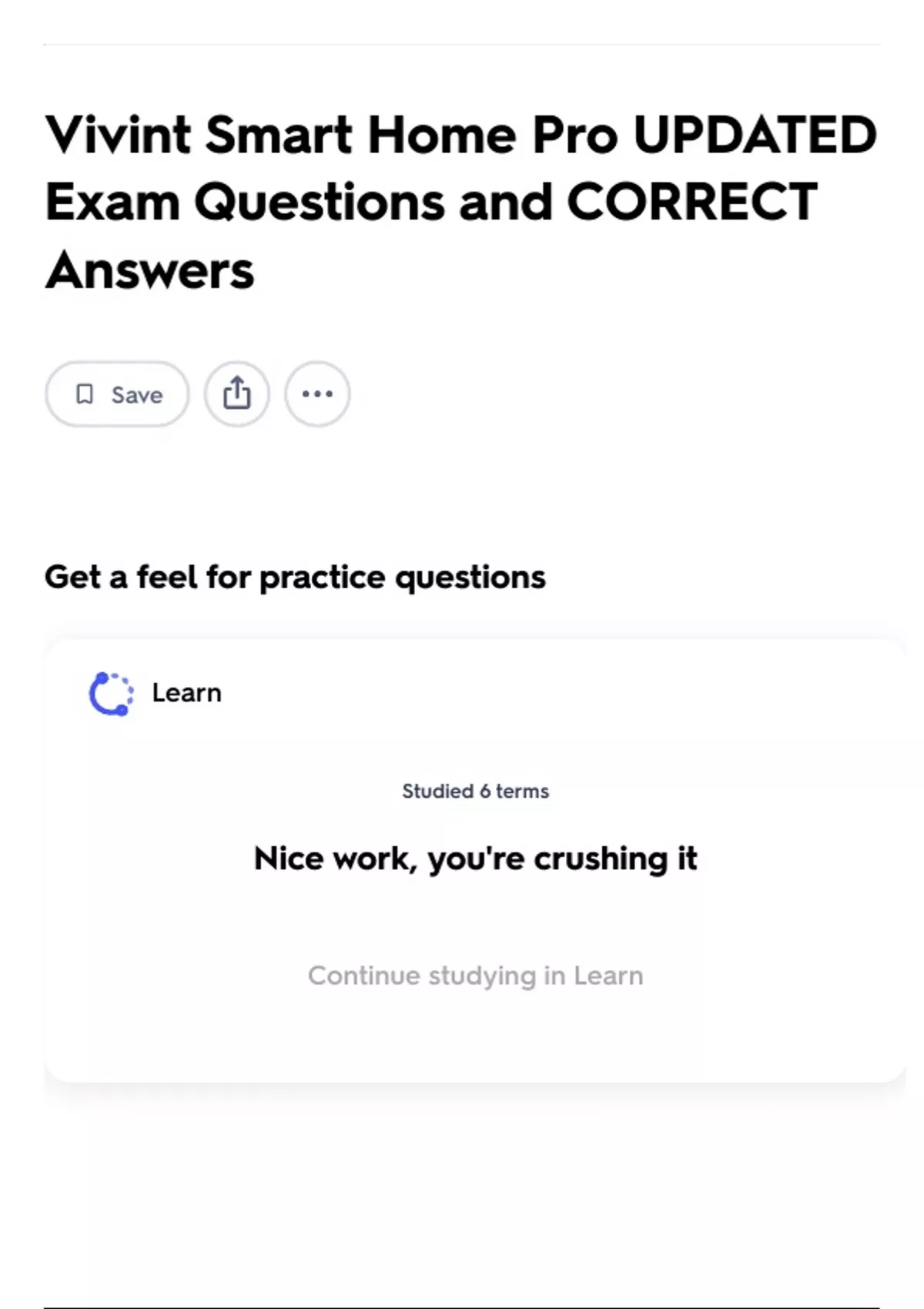 Continue studying in Learn