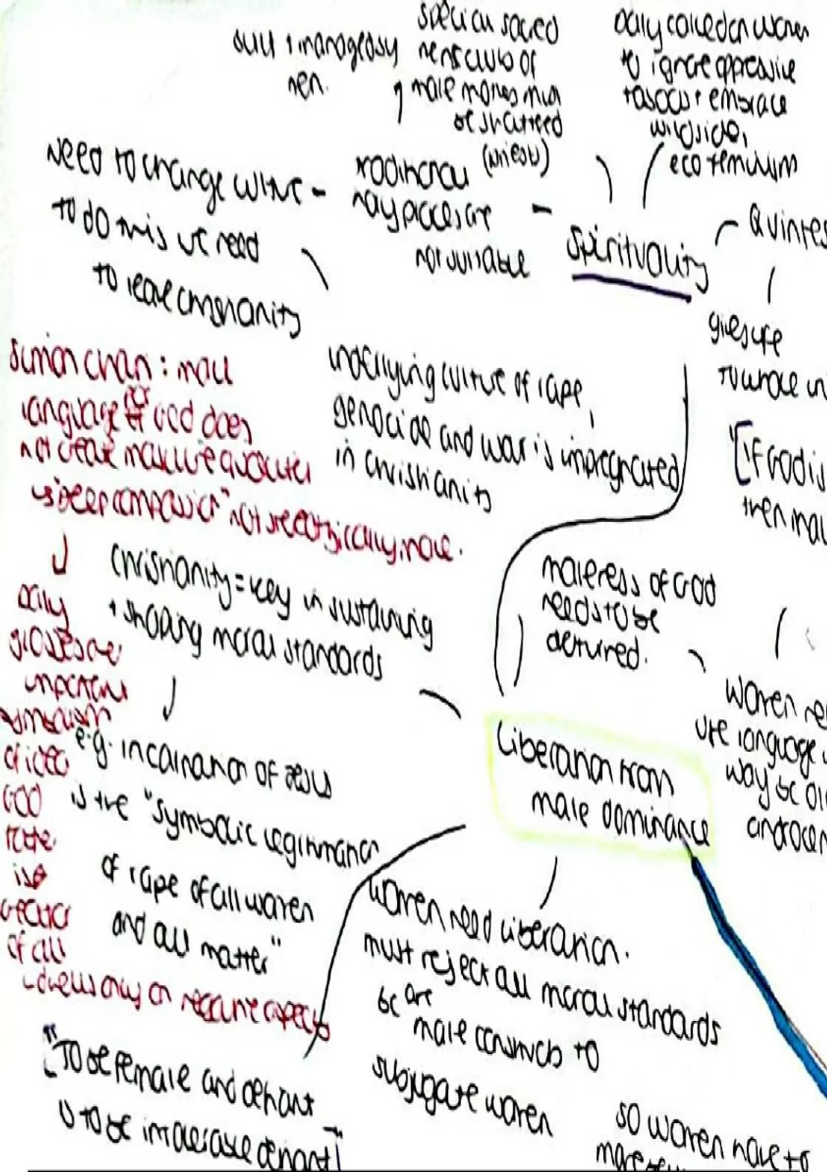 Summary OCR A Level Religious Studies: Gender and Theology mind map